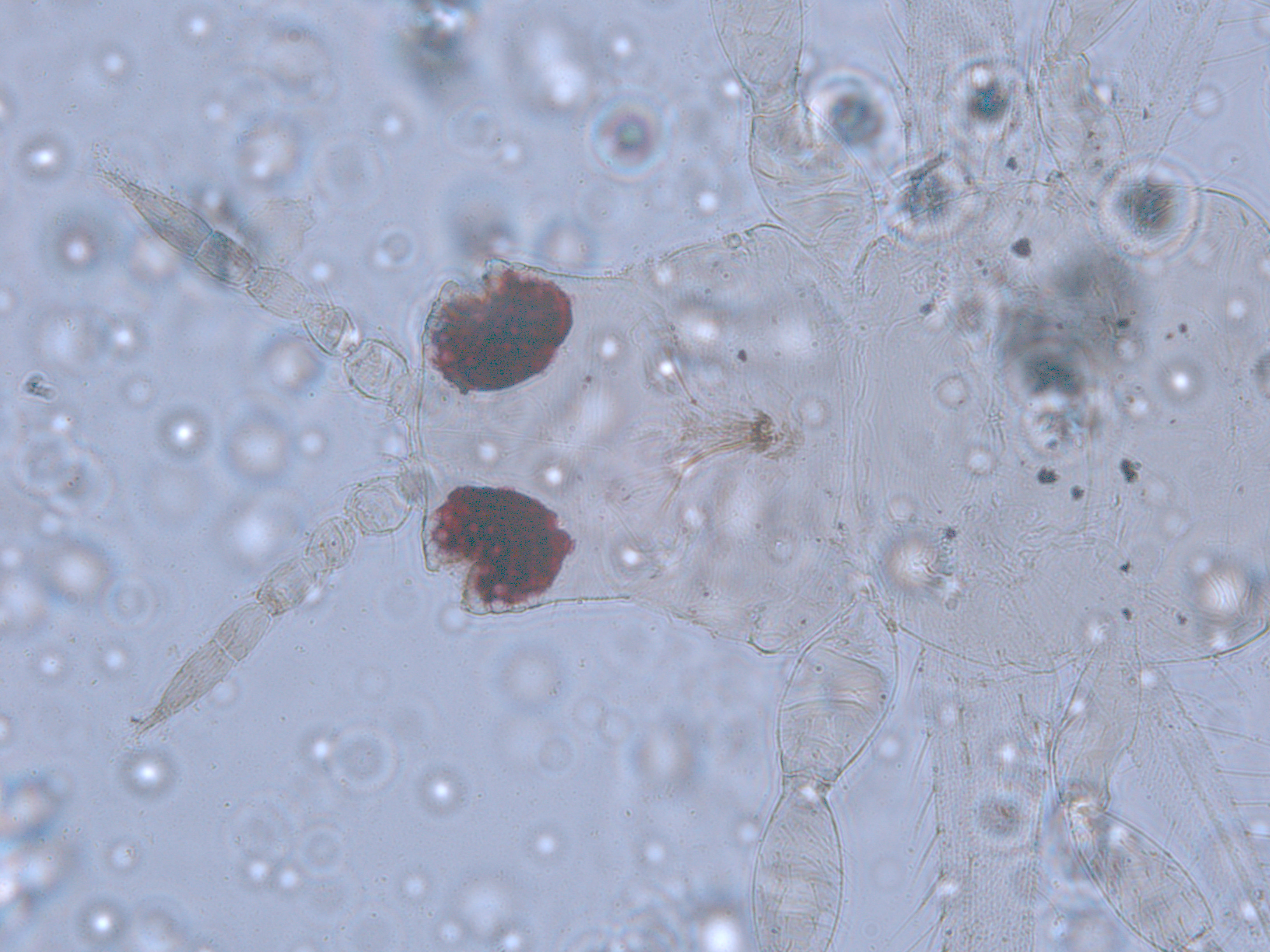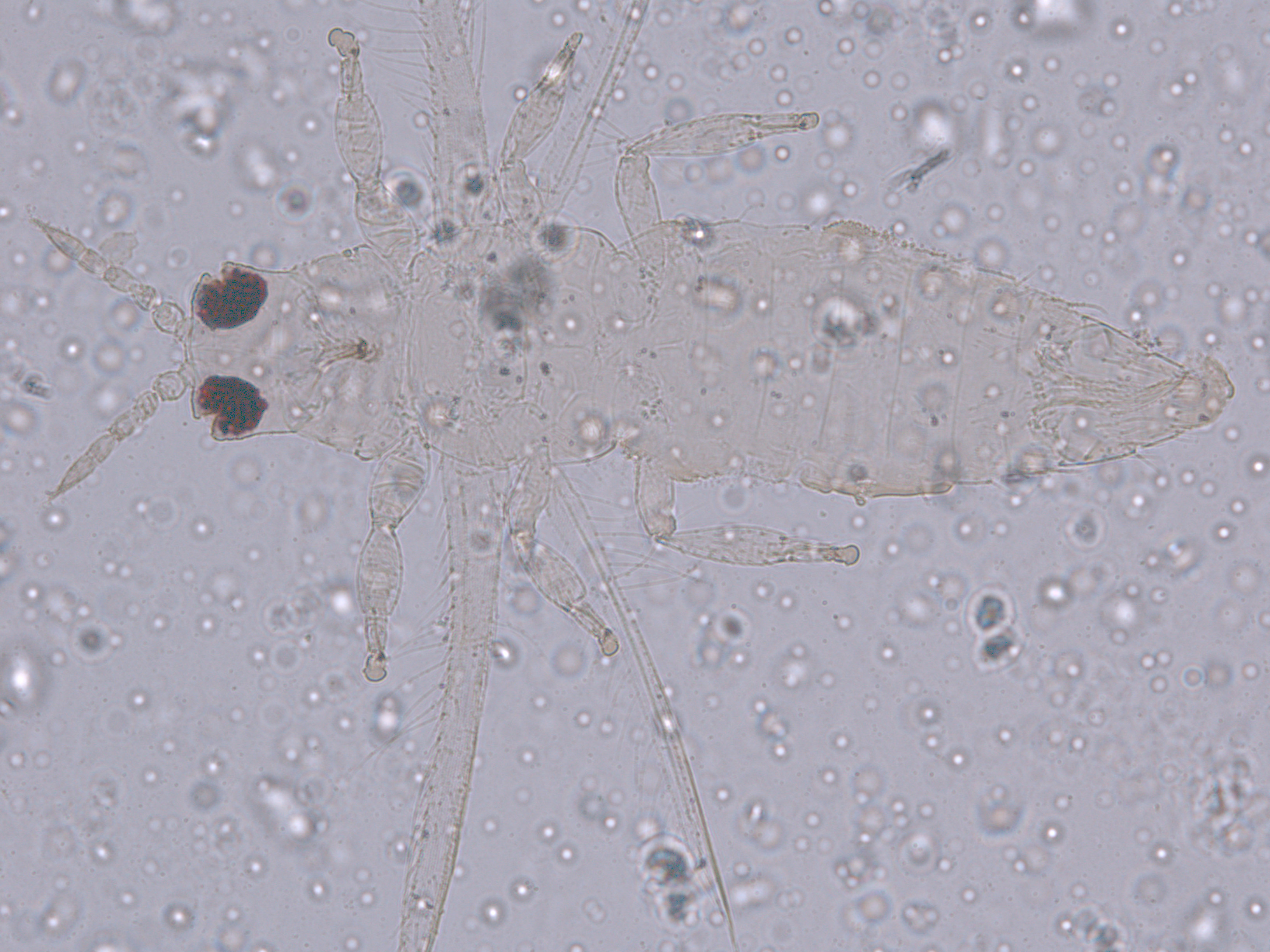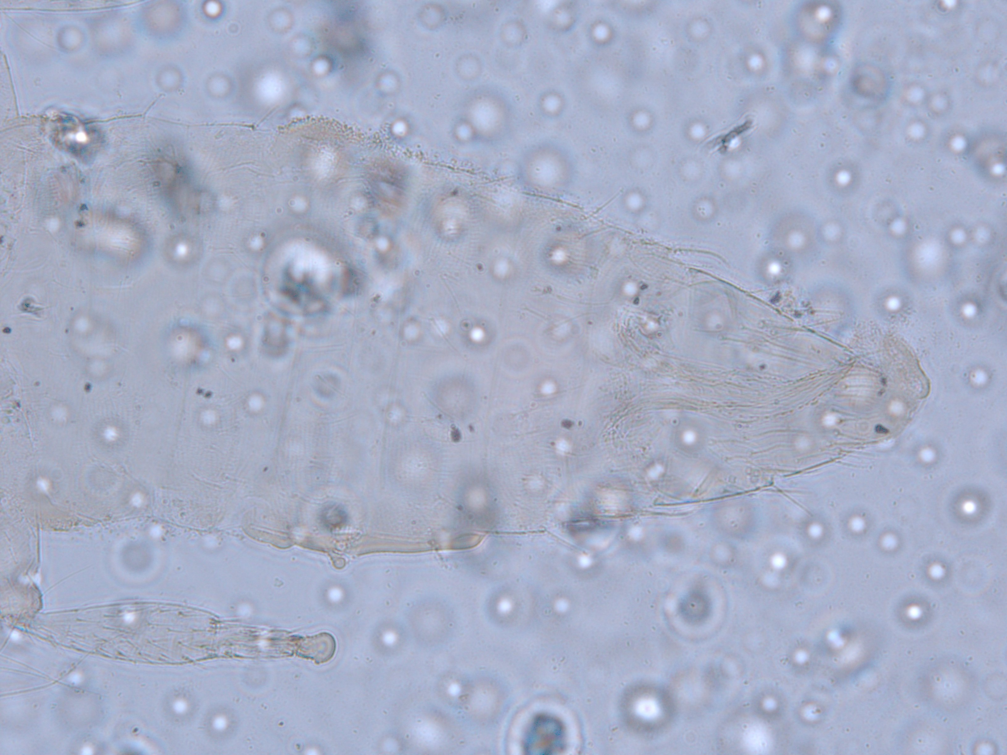 描述:雌虫:体浅黄色,复眼黑红,触角节IV-VI端部和VII-VIII浅灰色;口锥端部、各足跗节端部及产卵器较深。头略短于前胸,前单眼前外侧、单眼间及头后部有交错横线纹;复眼大占据头长的2/3;单眼呈扁三角形排列,位于复眼间略后部;前单眼鬃2对,其1对位于近复眼前内缘,另1对在前单眼前外侧;单眼间鬃位于前、后单眼中途内缘连线上;单眼和复眼后鬃约6对;触角8节,节III略短于IV和VI,节III背和IV腹面有短的叉状感觉锥,节V和VI外端、VI内侧各有简单感觉锥1个;各节近端背面和侧面有较长刚毛,节II-VI有密横排微毛;幕骨小。前胸背板密布横交错线纹于背板,但侧部有3个小的,后中部两侧有一大而横的及一小的无纹区;无长鬃;中胸背板前缘光滑,前部横纹略向前弯,后部两侧侧横线纹各自向中后延伸;前部细孔移位至两侧;前外侧对鬃不长于后中对鬃和后缘对鬃,后中对鬃位于中部,后缘对鬃向前移,接近后中对鬃;后胸背板中部纵网纹清楚,其前和两侧的纵网纹轻而模糊,网纹两侧密布纵弯线纹;前缘对鬃与前中对鬃的长度相似,均在前缘上;前翅前缘鬃22根,前脉鬃6+3,后脉鬃2根,翅瓣前缘端半部鬃4根,后基部有鬃1根,后端缘有长鬃2根;各足各节刚毛相当长但无粗刺。腹部节I-VIII背板两侧密布微毛,中部无毛区较宽,无线纹,约为有毛区宽度的一半;节VII和VIII背板后缘梳完整;细孔距微毛区较劲,中对鬃在其内后方;节IX后缘之前有6对鬃呈弧形排列;节X后部有鬃4对;股节背板和腹板前缘线几乎不可见,腹板节II-VII两侧微毛区宽度总和不及光滑区宽度;节II-VII腹板有细横纹;节II后缘鬃2对,接近后缘,节III-VIII后缘3对鬃较长,远离后缘至前中部,无附属鬃。