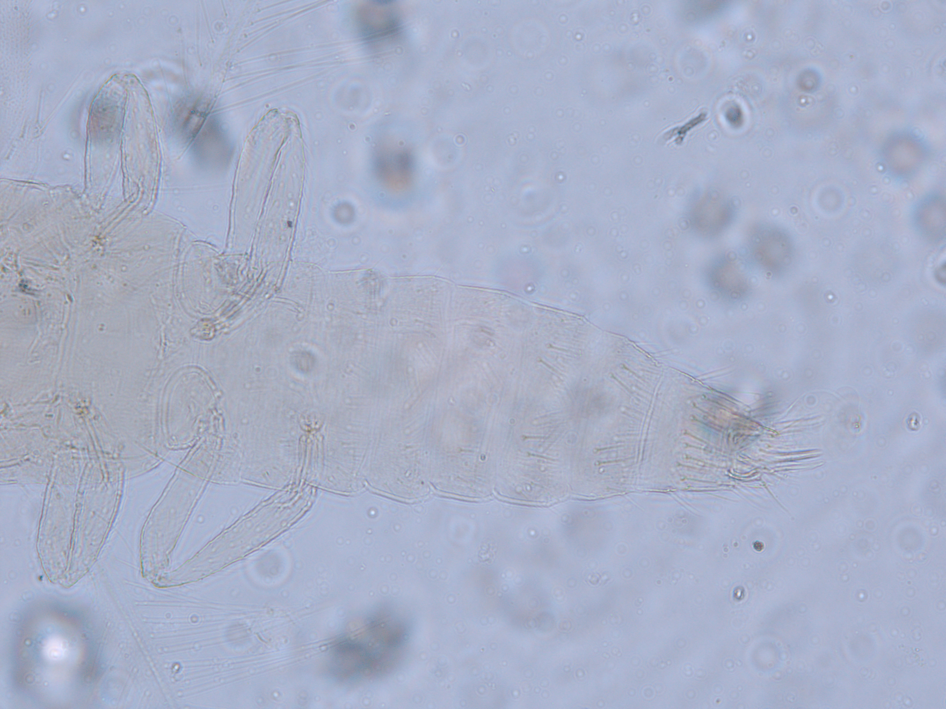 描述:雄虫:体色与一般结构相似于雌虫,但后胸背板前缘对鬃和前中对鬃远离前缘,网纹轻微,几乎不可见;腹部较细;节IX背板后缘6对鬃大体排为一横列;节IX两侧无抱钳;腹板无腺域。
