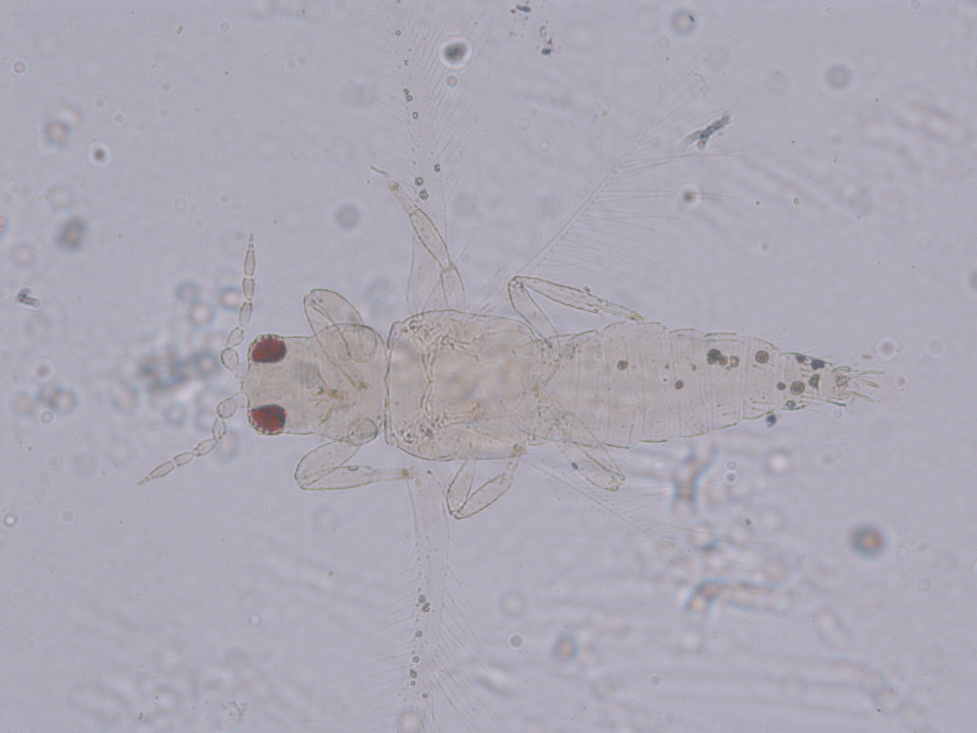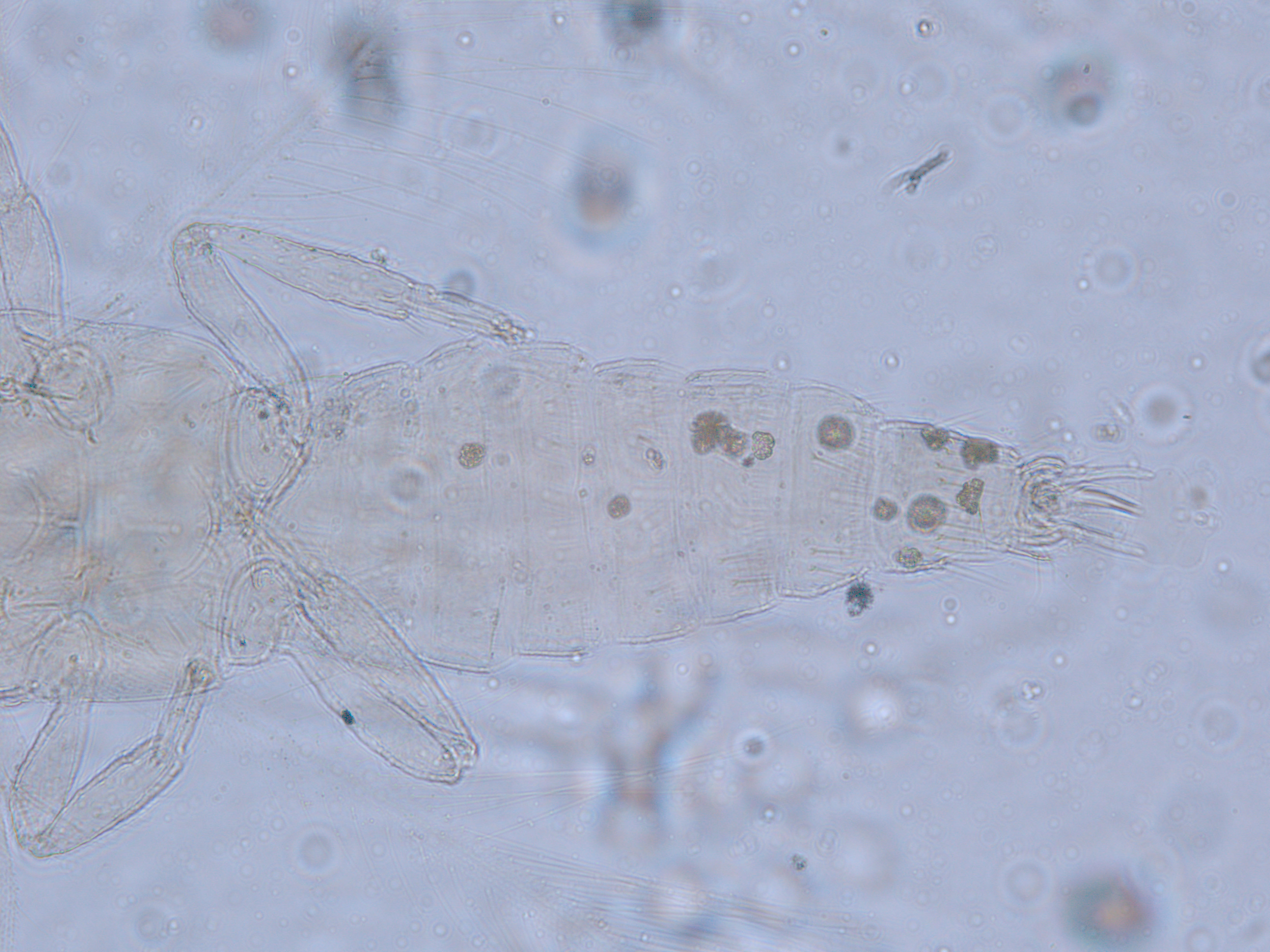 描述:雄虫:体色与一般结构相似于雌虫,但后胸背板前缘对鬃和前中对鬃远离前缘,网纹轻微,几乎不可见;腹部较细;节IX背板后缘6对鬃大体排为一横列;节IX两侧无抱钳;腹板无腺域。