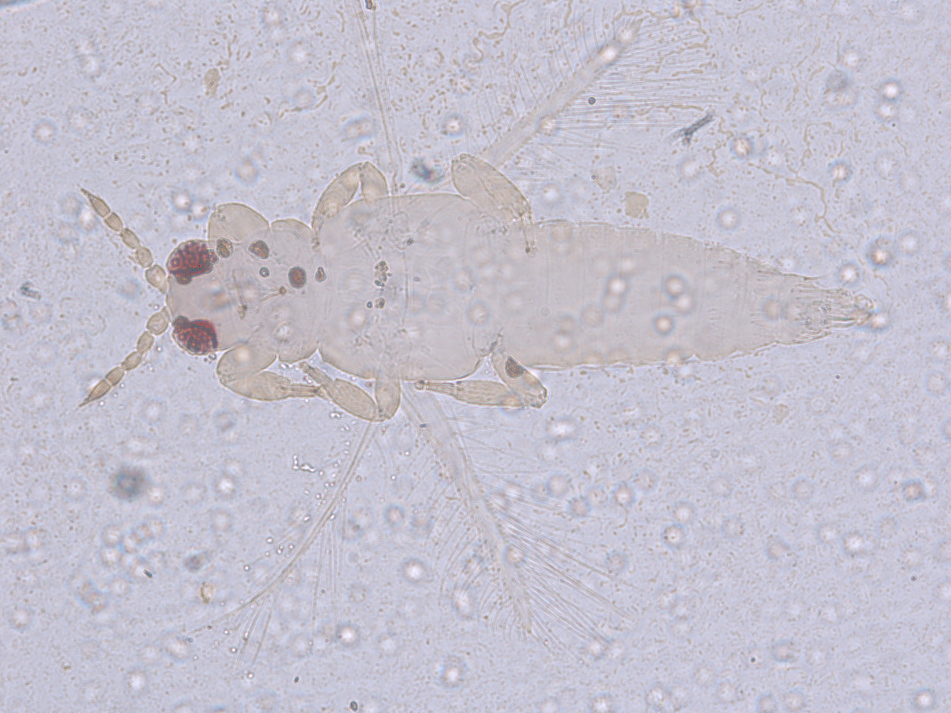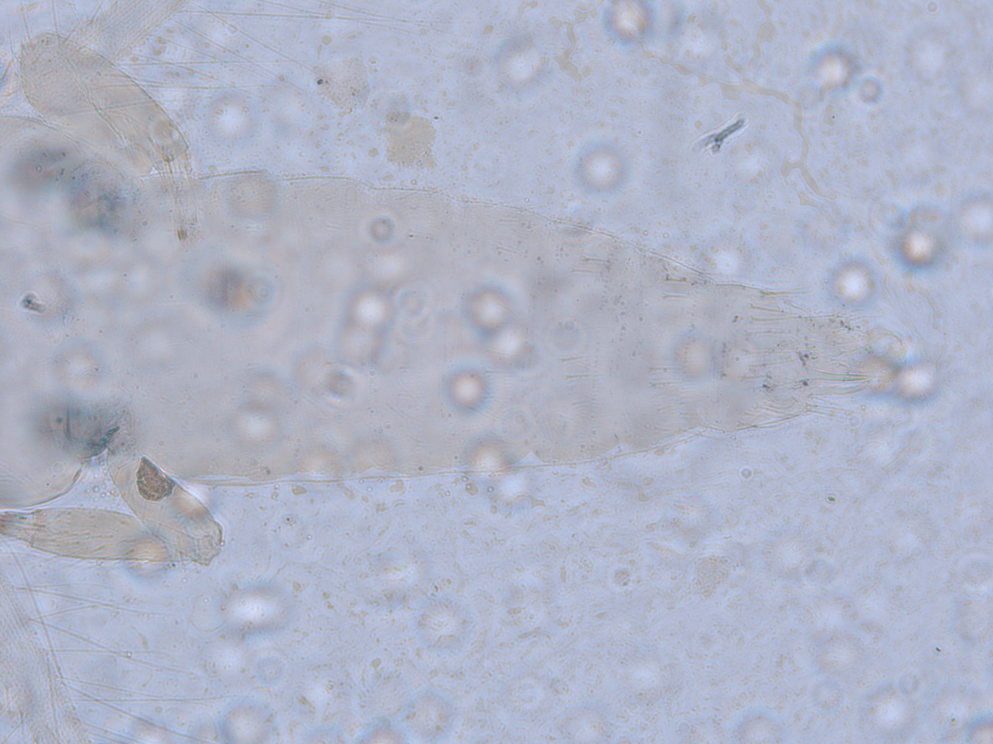 描述:雄虫:体色与一般结构相似于雌虫,但后胸背板前缘对鬃和前中对鬃远离前缘,网纹轻微,几乎不可见;腹部较细;节IX背板后缘6对鬃大体排为一横列;节IX两侧无抱钳;腹板无腺域。