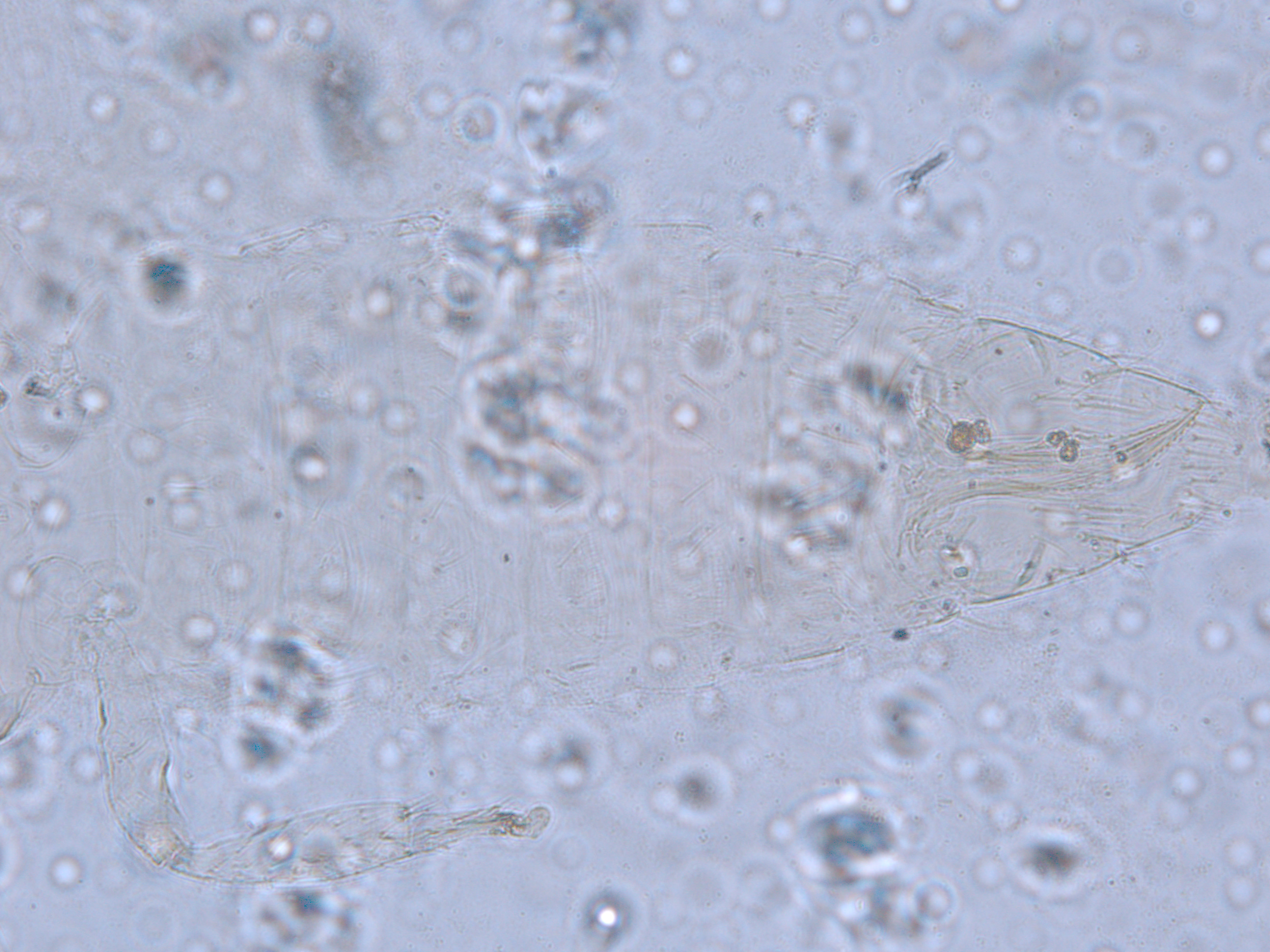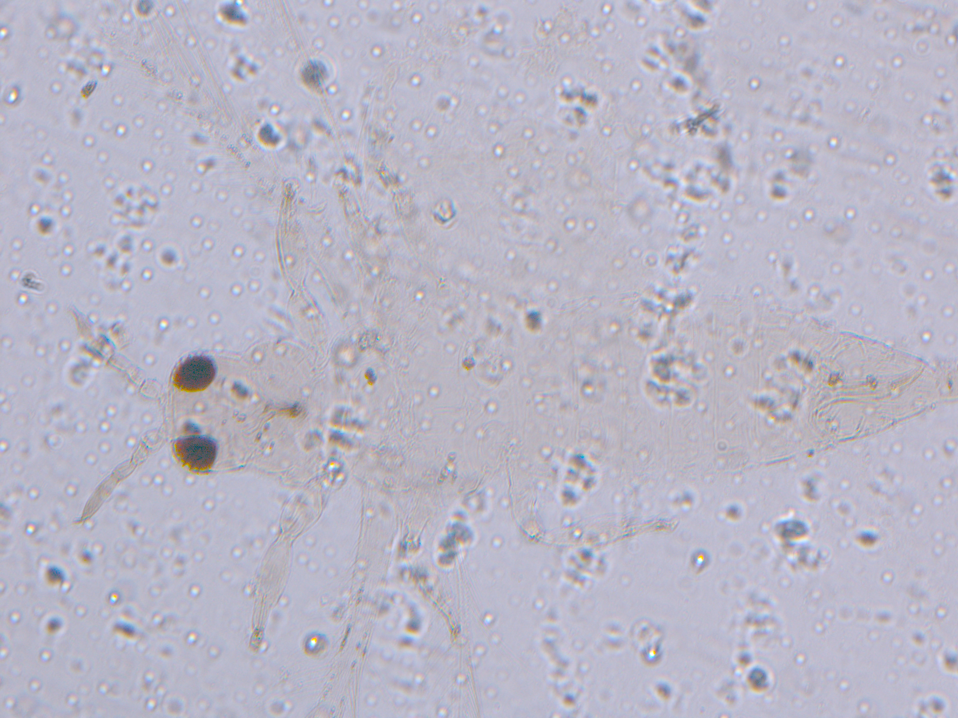 描述:雌虫:体浅黄色,复眼黑红,触角节IV-VI端部和VII-VIII浅灰色;口锥端部、各足跗节端部及产卵器较深。头略短于前胸,前单眼前外侧、单眼间及头后部有交错横线纹;复眼大占据头长的2/3;单眼呈扁三角形排列,位于复眼间略后部;前单眼鬃2对,其1对位于近复眼前内缘,另1对在前单眼前外侧;单眼间鬃位于前、后单眼中途内缘连线上;单眼和复眼后鬃约6对;触角8节,节III略短于IV和VI,节III背和IV腹面有短的叉状感觉锥,节V和VI外端、VI内侧各有简单感觉锥1个;各节近端背面和侧面有较长刚毛,节II-VI有密横排微毛;幕骨小。前胸背板密布横交错线纹于背板,但侧部有3个小的,后中部两侧有一大而横的及一小的无纹区;无长鬃;中胸背板前缘光滑,前部横纹略向前弯,后部两侧侧横线纹各自向中后延伸;前部细孔移位至两侧;前外侧对鬃不长于后中对鬃和后缘对鬃,后中对鬃位于中部,后缘对鬃向前移,接近后中对鬃;后胸背板中部纵网纹清楚,其前和两侧的纵网纹轻而模糊,网纹两侧密布纵弯线纹;前缘对鬃与前中对鬃的长度相似,均在前缘上;前翅前缘鬃22根,前脉鬃6+3,后脉鬃2根,翅瓣前缘端半部鬃4根,后基部有鬃1根,后端缘有长鬃2根;各足各节刚毛相当长但无粗刺。腹部节I-VIII背板两侧密布微毛,中部无毛区较宽,无线纹,约为有毛区宽度的一半;节VII和VIII背板后缘梳完整;细孔距微毛区较劲,中对鬃在其内后方;节IX后缘之前有6对鬃呈弧形排列;节X后部有鬃4对;股节背板和腹板前缘线几乎不可见,腹板节II-VII两侧微毛区宽度总和不及光滑区宽度;节II-VII腹板有细横纹;节II后缘鬃2对,接近后缘,节III-VIII后缘3对鬃较长,远离后缘至前中部,无附属鬃。