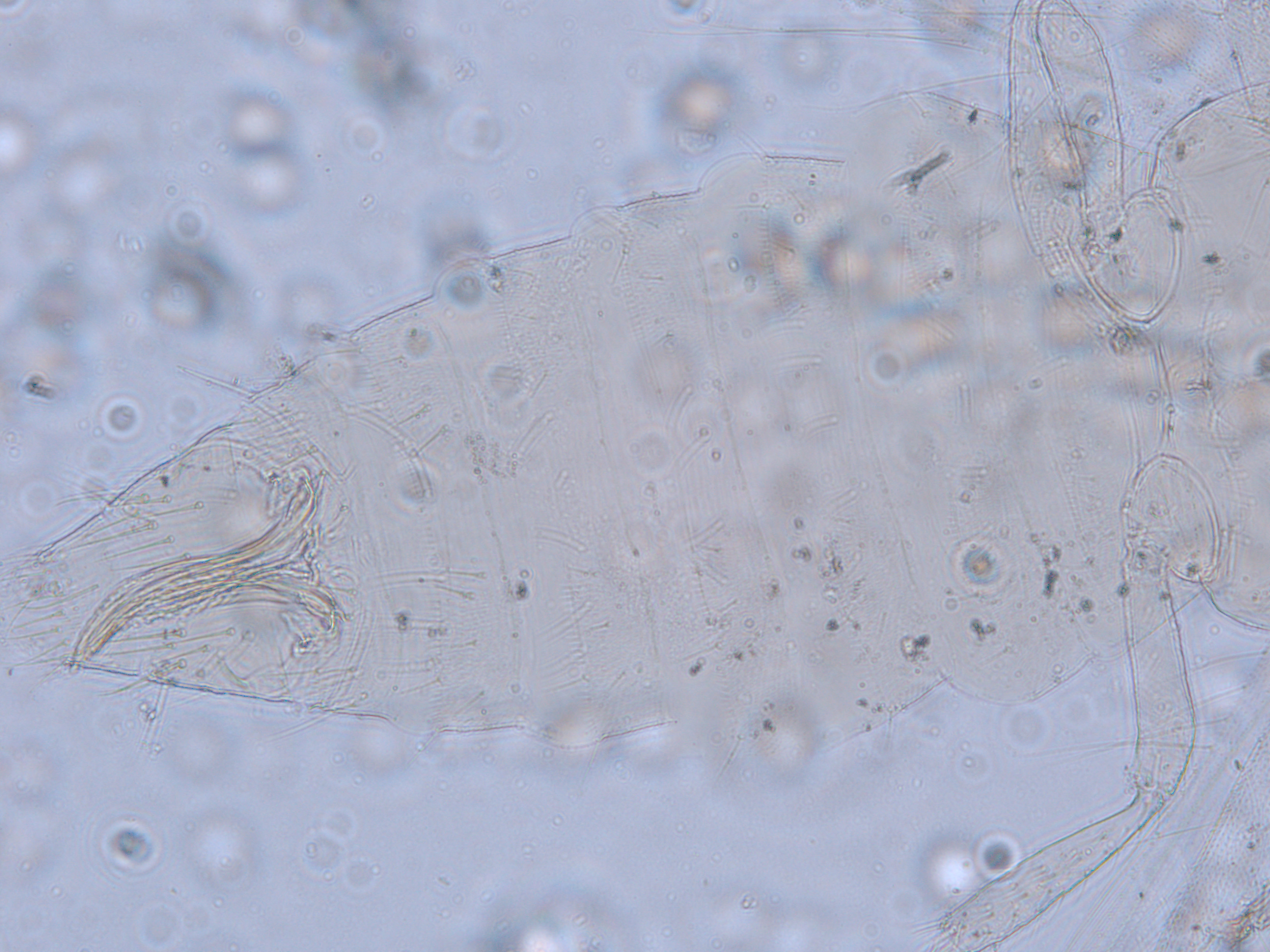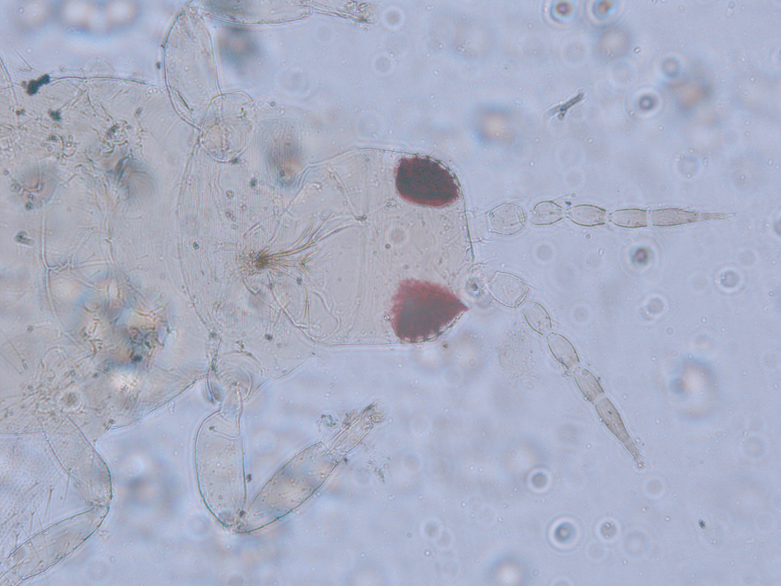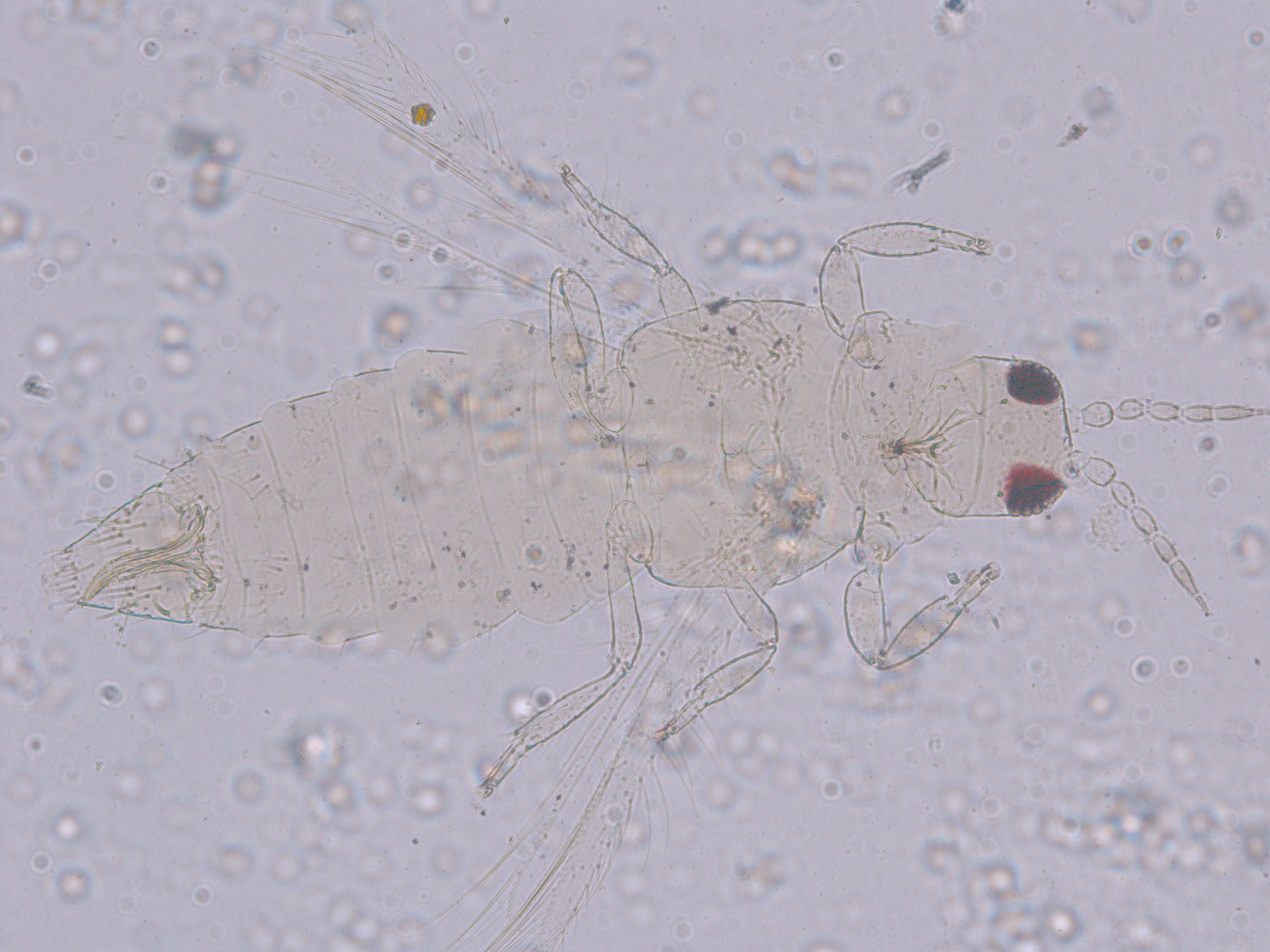 描述:二龄若虫:体乳黄色,复眼红色,触角节I浅白色,II-VII浅灰色;口锥端部橙黄色;头短于前胸;单眼缺;头背光滑;复眼间鬃1对,后鬃1对;触角7节,各基部数节的刚毛较短,端部2节的刚毛较长,节I-II光滑,节III约等长于IV,边缘具覆瓦状缺刻,端部有2轮微毛,节IV最粗,纺锤状,有5轮微毛,外端有1粗的,内下有1细长的简单感觉锥,节V-VI外侧各有1较细长感觉锥。头腹面约8根短刚毛;头腹面、胸部和腹部背板和腹板密布极微颗粒,但腹部节IX-X颗粒较稀疏;腹部节背板前中部具6对短鬃,在节IX-X的相对长些;各节腹板后缘有短鬃6对;各足刚毛比胸部和腹部背板刚毛长;所有刚毛端部尖细。