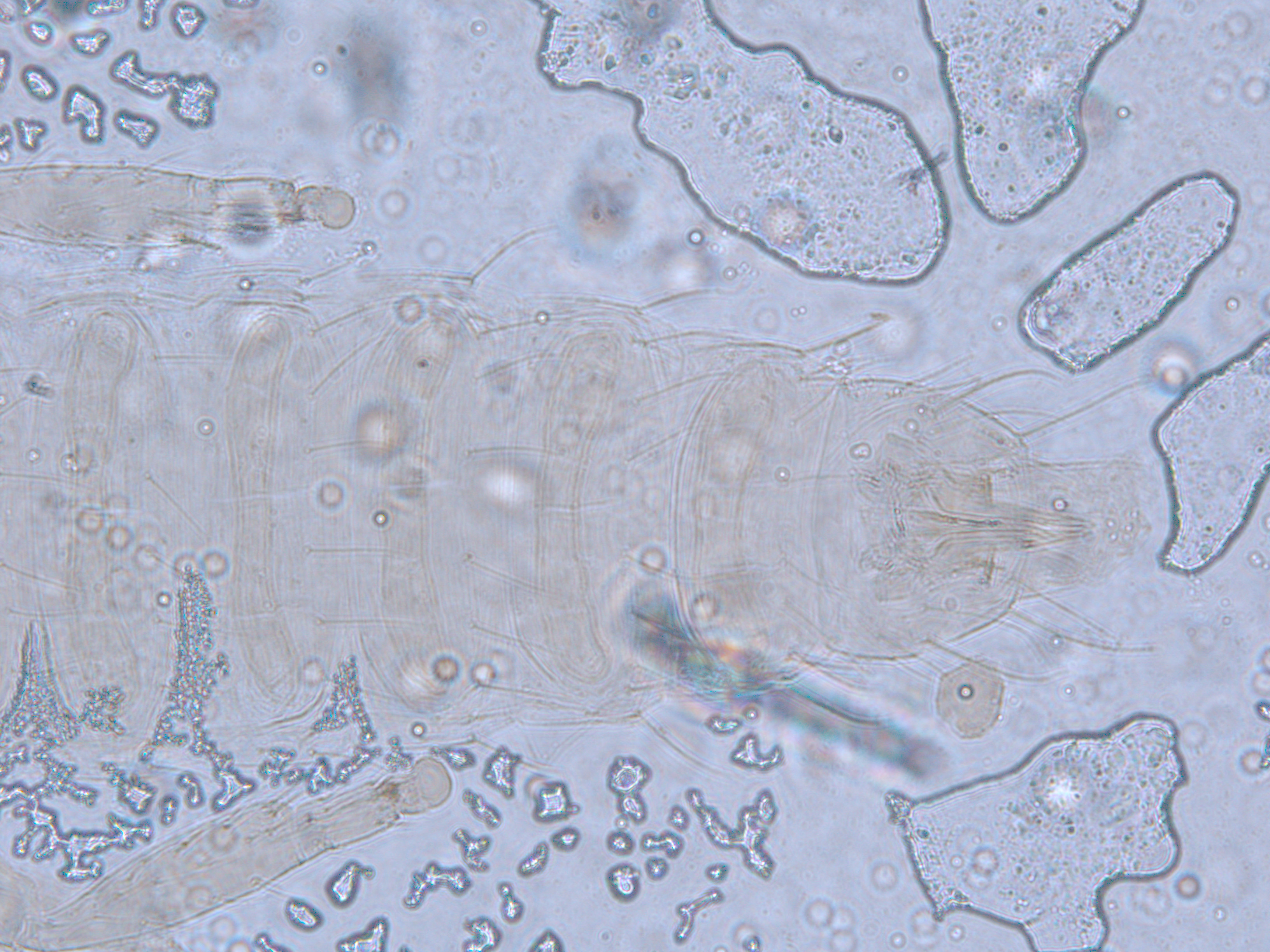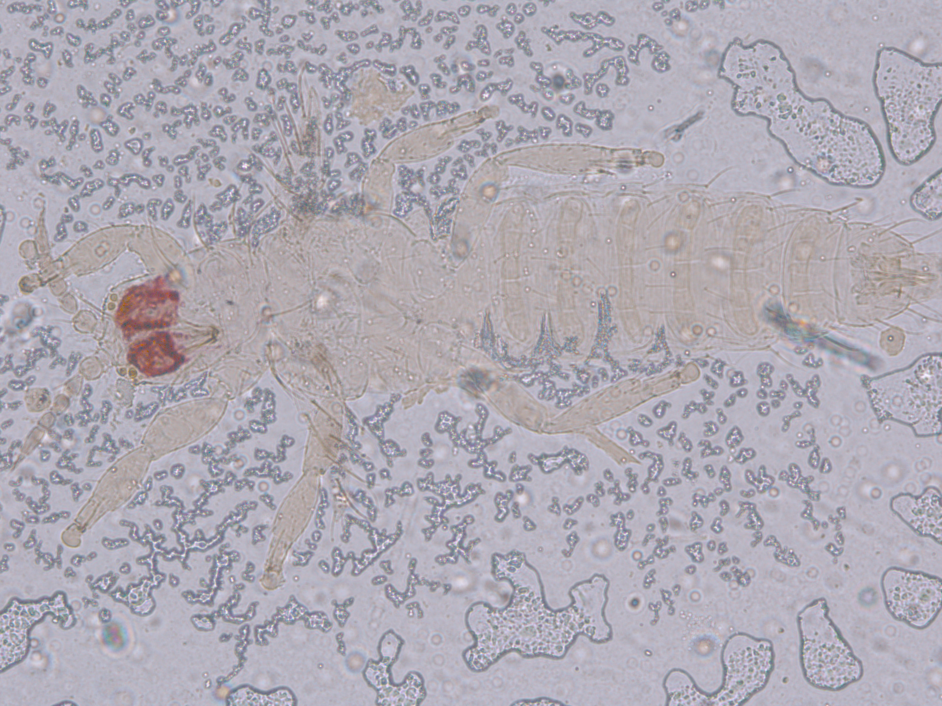 描述:雄虫:体浅黄色;触角节I-II浅黄色,III-VIII浅灰色;前胸和翅鬃暗。头宽于长;单眼间鬃位于前单眼后侧,在三个单眼的外缘连线之外。前胸长于头,背板较平滑,后部无附属鬃;前翅浅,退化成短翅型,长达后胸后缘,前缘鬃3-6根,前脉鬃3-5根,后脉鬃1-3根;后翅退化;中后胸背板有网纹、横纹或纵纹;中后胸内叉骨通常清晰,其宽度近似刺长。腹部背板节I中部、两侧及II-VIII两侧有细横纹;VIII后缘梳缺;IX前部有鬃2对,后部有鬃2对,分别大致排为二横列;腹板节III-VIII有哑铃形腺域,占该节整个宽度。