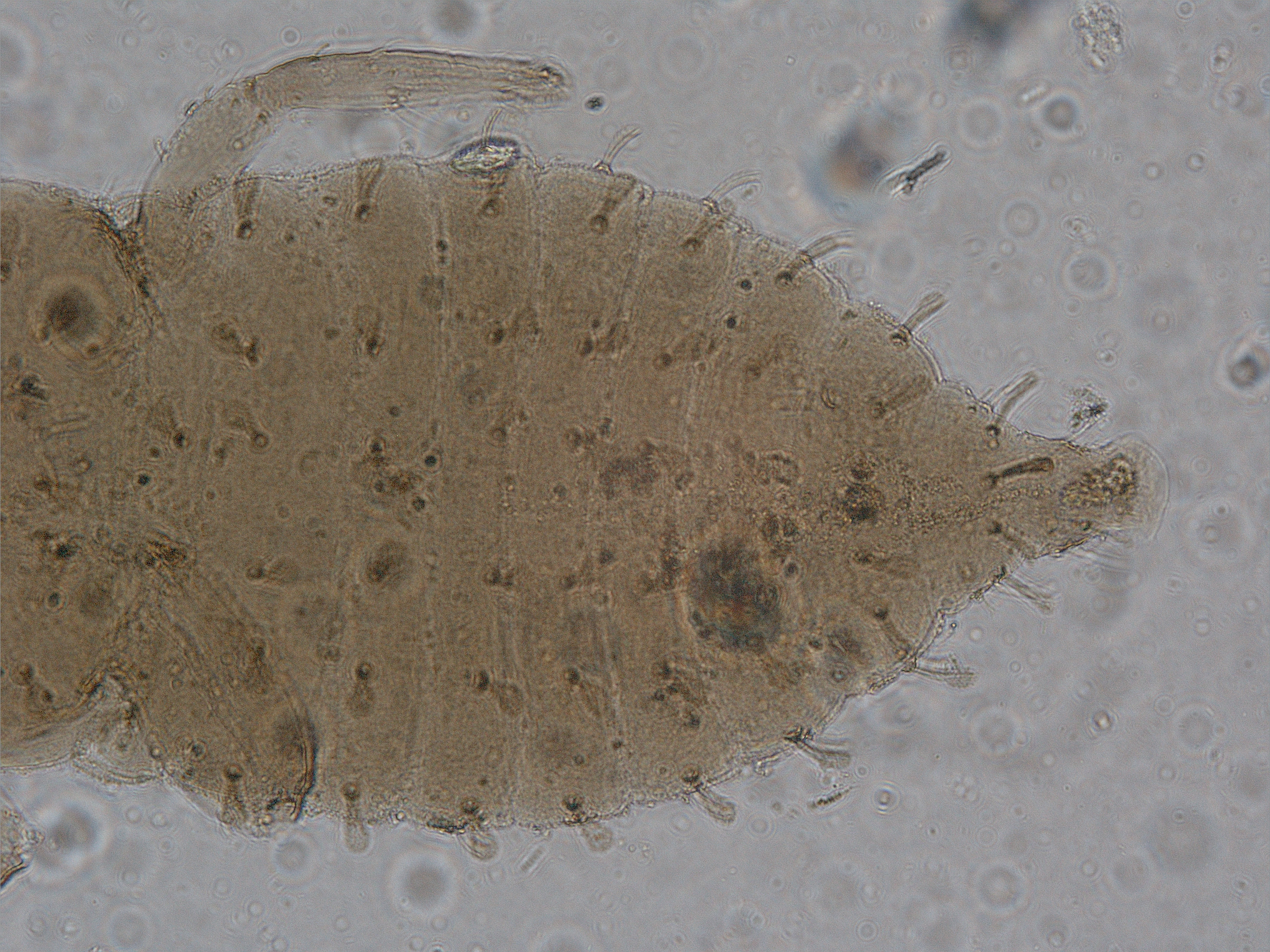 描述:二龄若虫:体黄色,但触角节I及III-VII浅黄色,体鬃暗黄色;头背后部、胸部、腹部背板布满微颗粒;头背复眼内各鬃略扇形,触角节II和III背端部各一对鬃略扇形,前胸背板有7对鬃,中后胸背板有7对鬃,腹部节I有2对,节II-VII各有3对鬃,节IX较长鬃及节X中对鬃均略扇形。