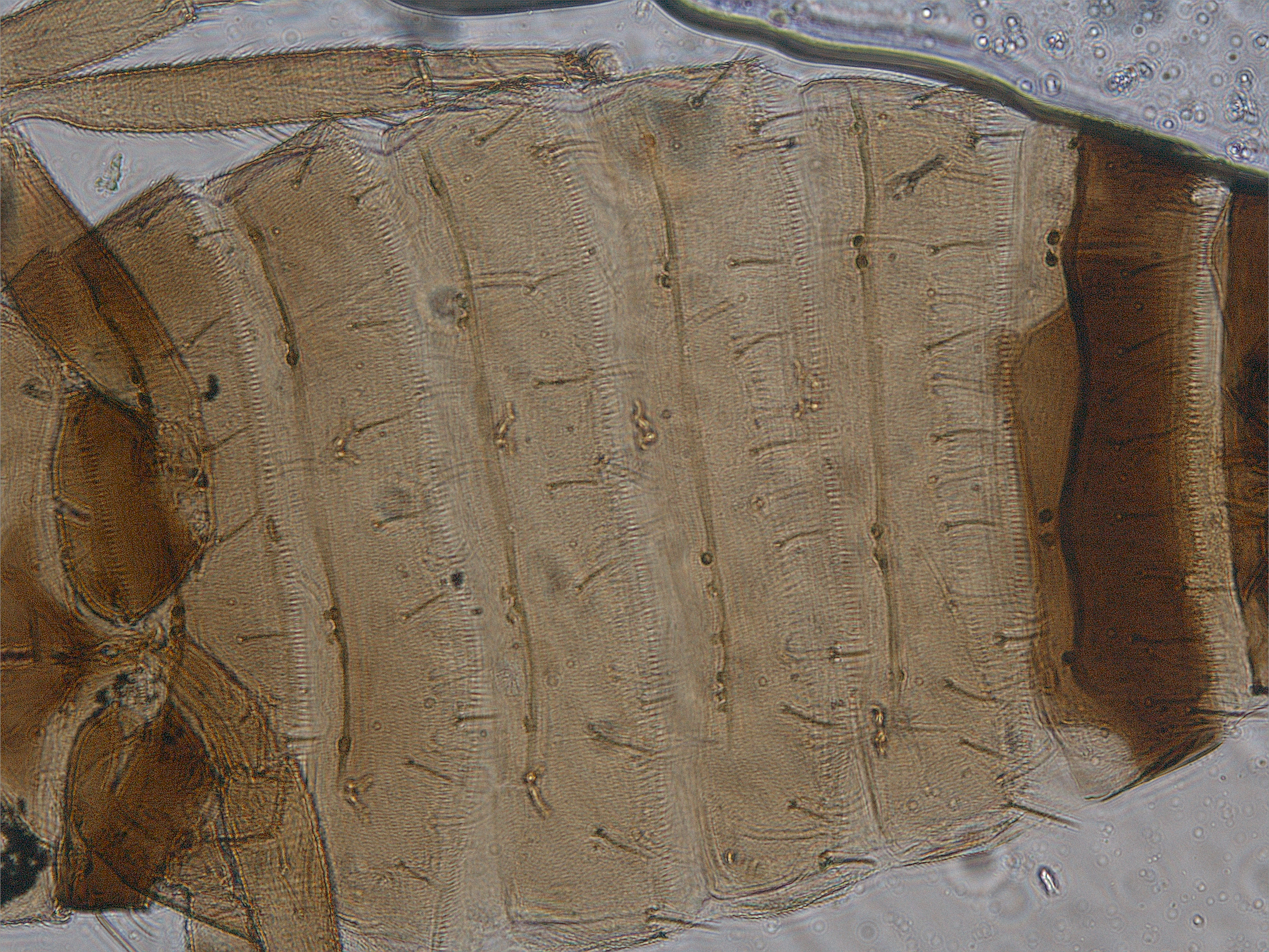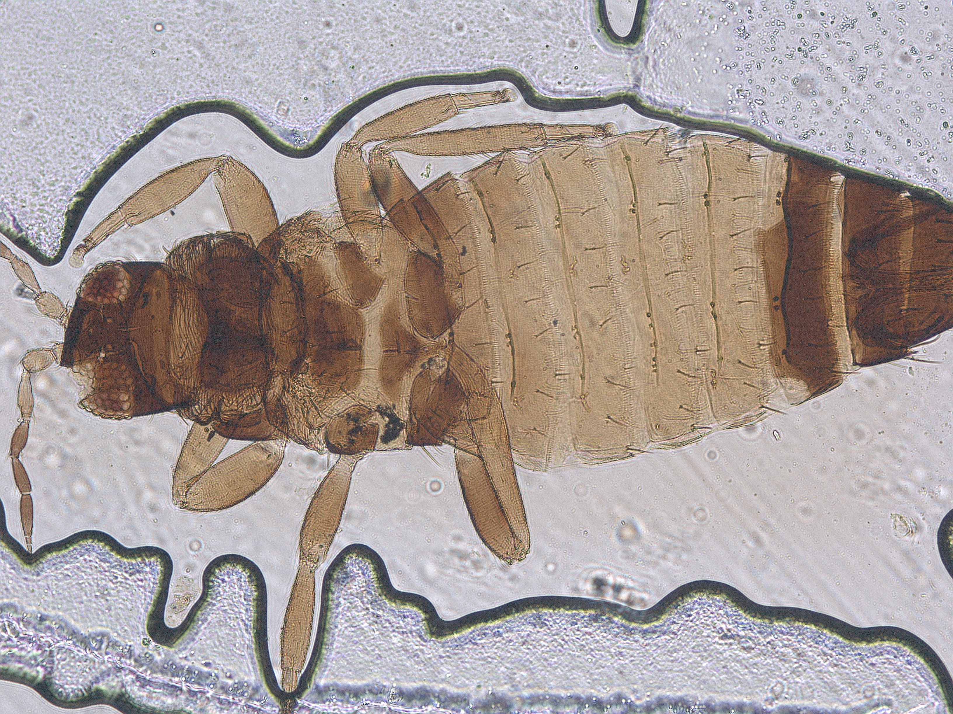 描述:雄虫:短翅型,一般体色和结构相似于雌虫,但体较小,腹部节I-VII黄色,翅短小;腹部节IX背鬃长度近似,前排2对,中排1对,后排4对;腹板节IV-VII有横腺域。