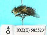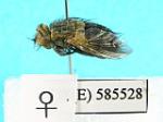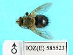 体长11mm。整个头部覆浓厚的金黄色粉被,额及侧额倍稀疏的黑毛,侧颜裸,颊被浓密的棕黑色长毛,仅在前部有2~3根细鬃,单眼鬃缺如,后头被金黄色毛。胸部黑褐色,肩胛红黄色,整个胸部覆浓厚的金黄粉被,背面具四个黑纵条;足除胫节淡黄色外,其余全部黑色;翅灰色透明,基部黄色;腹部黑,覆灰白色粉被,第2背板后半部到第4背板前半部的两侧具暗黄色花斑,第1腹板被暗黄色毛,腹部腹面其他部分被黑毛。
