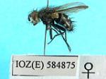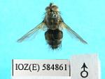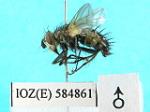 ♀ 额略窄于复眼的宽度,间额两侧缘向前方加宽,与侧额大致等宽;头部黑色,覆浓厚的灰白色粉被,每侧具外侧额鬃2根,单眼鬃发达,略小于额鬃,外顶鬃粗长,大于眼后鬃1倍;侧颜裸,与触角第3节的宽度等宽,触角黑色,第3节的长度为第2节的2倍;颊被黑毛及数根粗鬃;下颚须黄褐色,略短于触角第2节的长度,颏长为其自身直径的3.5-4倍;口缘显著向前方突出成鼻状;由髭基部至口缘的距离大于上唇唇基的宽度。胸部黑色,小盾片淡黄色,基缘具黑色窄横带,侧鬃2根;翅灰色透明,r4+5基部具6-7根小鬃,占基部脉段长度的1/4,中脉心角较近中肘横脉,其间距离与赘脉大致等长。腹部黑色,第3、4背板各具中心鬃1对和侧心鬃1根,两侧无红黄色花斑;第6、7合背板沿背中线纵裂为二,端部红黄色,全部被黑毛;第1腹板被黑毛。体长 11 mm。