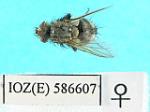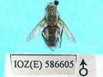 ♂ 额较复眼略宽,侧颜裸,较触角第3节窄0.7倍;触角第3节较第2节长1倍,其宽度较其自身长小0.5倍,颊被粗鬃及稀疏的黑毛,单眼鬃极发达,较外顶鬃略长,外顶鬃几乎较眼后鬃大1倍,整个头部覆灰白色粉被。胸部黑褐色,小盾片红黄色,r4+5脉具7-8根小鬃,小鬃占基部脉段长度的2/5-1/2,中肘横脉与中脉心角接近,其间的距离较赘脉短1倍;前足爪与第5分跗节大致等长。腹部黑色,被黑毛,第3、4背板两侧具红黄色花斑,各具1对中心鬃,每侧各具1根侧心鬃。肛尾叶基部3/4较宽,沿背中线具细棱,端部1/4窄,两侧缘大致平行;侧尾叶长三角形,末端具2个小齿。 ♀ 触角第2节较长,第3节较窄,前足跗节加宽不明显,第4分跗节的宽度相当于其长度的5/6;腹部两侧无花斑,第6+7合背板沿背中线纵裂为二,后缘具细小的缘鬃2-3行,排列较疏远。 体长 10.5-12 mm。